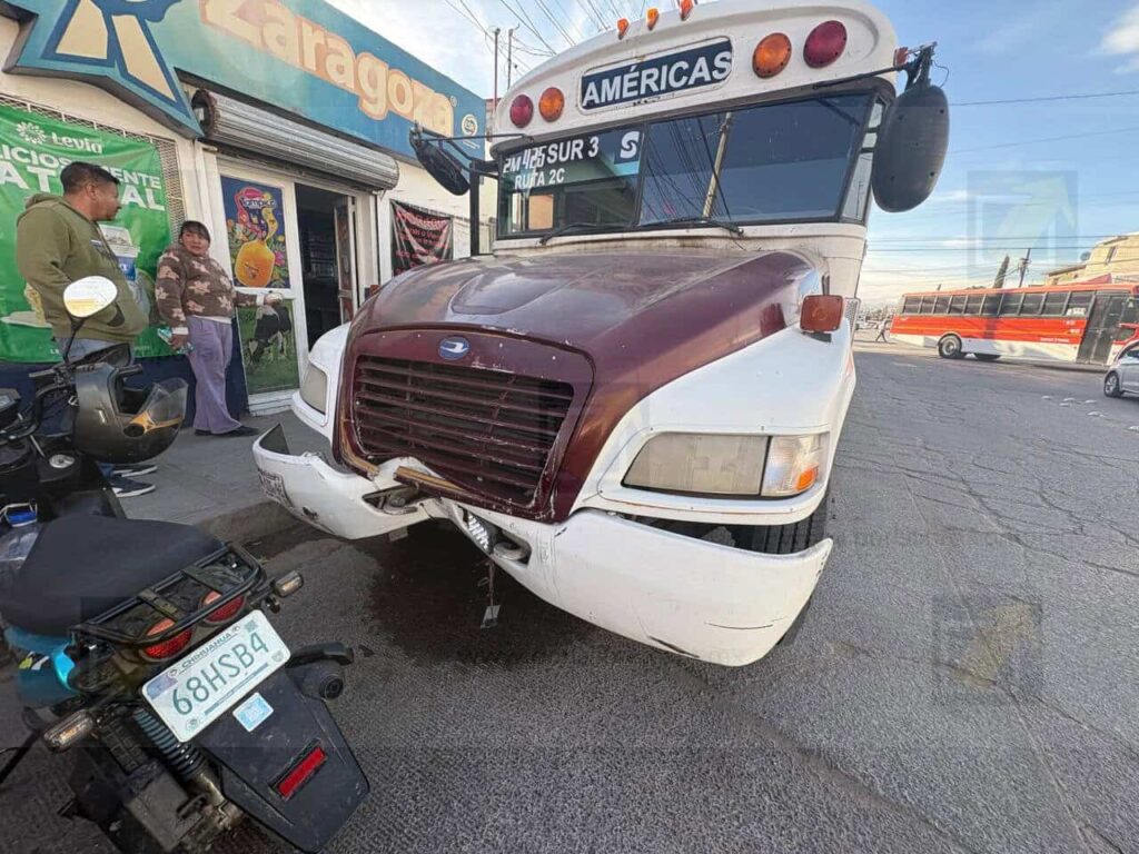 De acuerdo con la información recabada, dos sujetos armados con tubos abordaron el camión cuando circulaba por JJ Calvo. Durante la agresión, el conductor perdió el control de la unidad, lo que provocó que el vehículo se impactara contra un local de carnitas, derribara barras de contención y causara daños en la cortina del negocio, así como en un carrito de comida que se encontraba en el interior del establecimiento.