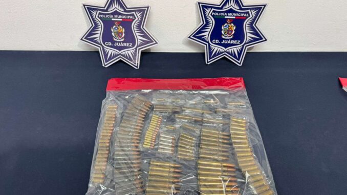 Ciudad Juárez.- Elementos de la Secretaría de Seguridad Pública Municipal adscritos a la Estación de Policía del Distrito Valle, aseguraron más de cien cartuchos útiles que se encontraban abandonados en la vía pública.