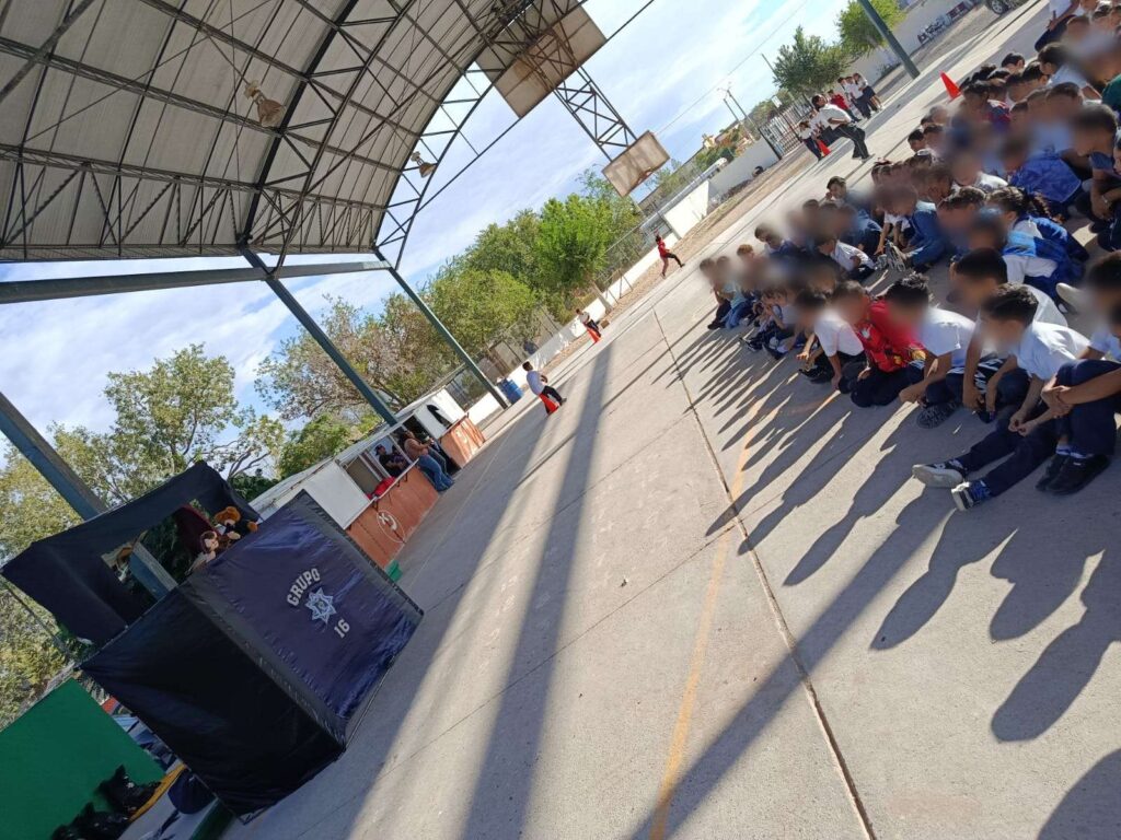 Ciudad Juárez .- Dentro del marco de las acciones de prevención social y apoyo ciudadano, personal de la Secretaría de Seguridad Pública Municipal adscritos a la Dirección de Prevención Social llevaron a cabo una función de “teatrino” en la escuela primaria José de la Paz Rodríguez.