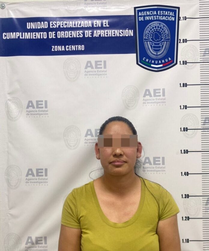 Elementos de la Agencia Estatal de Investigación (AEI) adscritos a la Fiscalía de Distrito Zona Centro, ayer jueves, detuvieron con una orden de aprehensión a Karla Iveth G. G., por el delito de homicidio imprudencial, en la ciudad de Chihuahua.