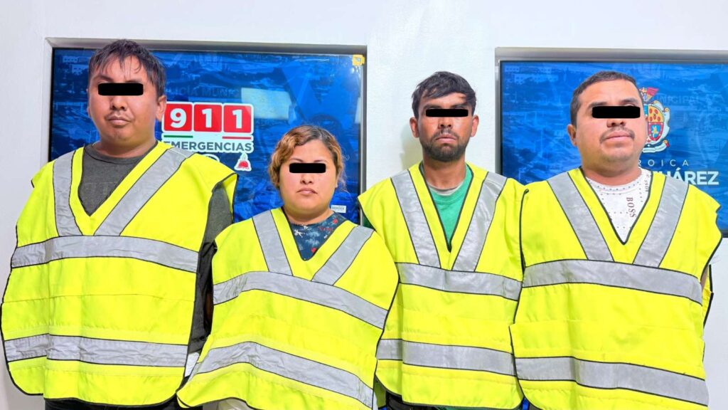 Ciudad Juárez . – Elementos de la Secretaría de Seguridad Pública Municipal, adscritos a la Estación de Policía del Distrito Universidad, detuvieron a Alejandro B. C., José Isaac C. C., Santiago G. M. y Francisca F. P., por su presunta participación en el delito de robo a casa comercial, mismos que serán investigados por su posible implicación en el robo de varias tiendas de conveniencia en la zona.