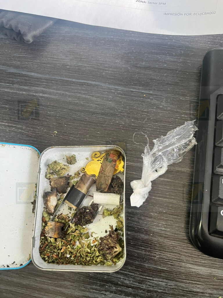 Tras ser abordado, los oficiales observaron que el sujeto presentaba signos de intoxicación, incluyendo dificultad para hablar y falta de coordinación. Durante una inspección preventiva, le fue localizada una bolsa con una sustancia con características similares a la droga conocida como “cristal”.