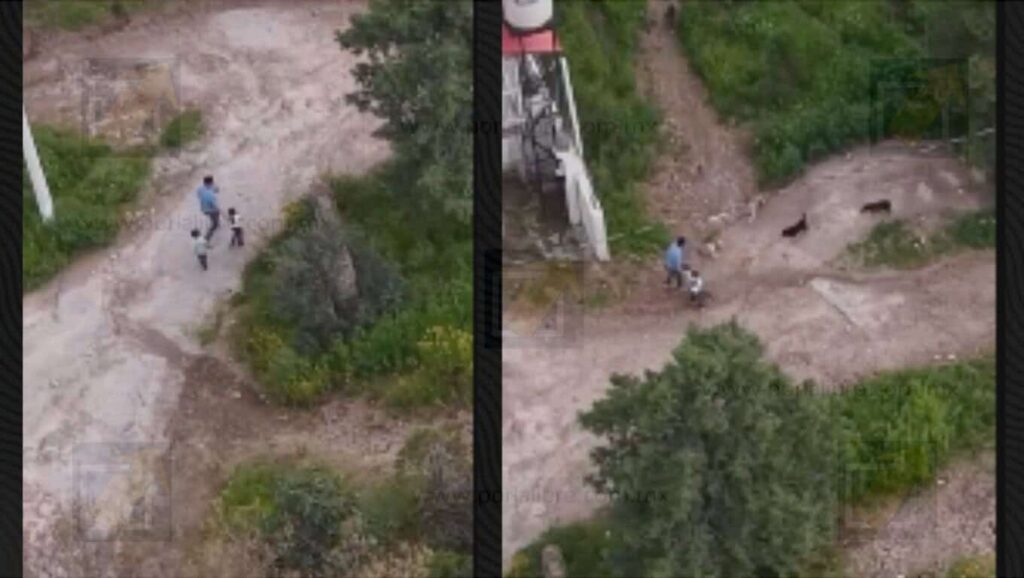 Otro familiar que en esos instantes manipulaba un dron logró captar el peligroso momento en que el padre levanta a sus dos hijos y comienza a correr y termina la grabación.