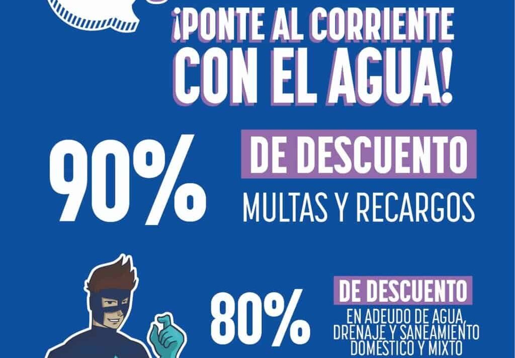 Este esquema estipula una rebaja hasta del 90 por ciento en multas y recargos, así como del 80 por ciento en adeudo de agua, drenaje y saneamiento doméstico y mixto.