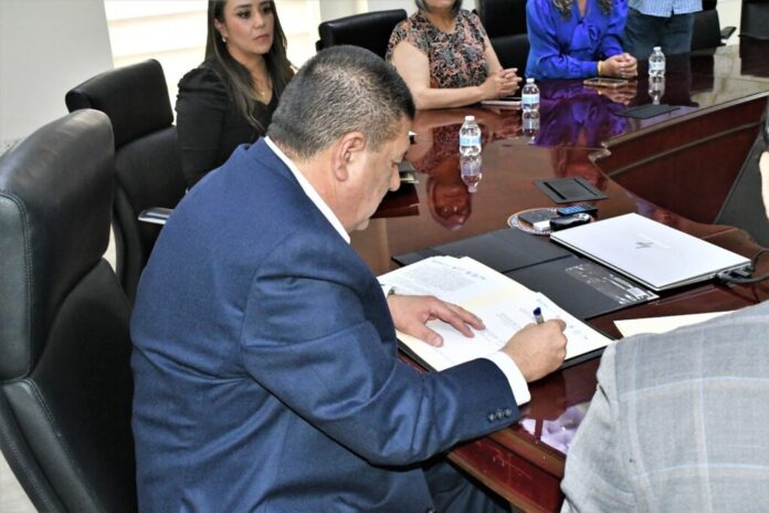 La firma se llevó a cabo en el Despacho del Fiscal General, con Tatiana Carreón Lara como titular del CEJUM y el Dr. Luis Antonio Arrieta Trevizo, por el IMPAS.