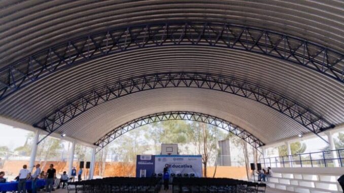 Chihuahua- El alcalde Marco Bonilla, inauguró un domo en la primaria Veteranos de la Revolución, de la colonia Veteranos, mismo que fue construido gracias al programa de Infraestructura Educativa, donde 153 alumnos se beneficiaron con esta techumbre que ayudará a que convivan y realicen deporte, protegiéndolos de las inclemencias del clima.