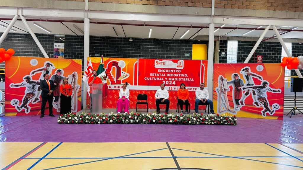 Chihuahua.- Con un gran ambiente y la participación de trabajadores de la educación de las 15 regiones sindicales, la Sección 8 del Sindicato Nacional de Trabajadores de la Educación, inauguró el Encuentro Estatal Deportivo y Cultural Magisterial 2024, evento que reúne a 661 agremiados para disputar el campeonato en las disciplinas de fútbol, voleibol y pintura.
