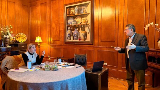 Chihuahua.- La gobernadora Maru Campos sostuvo una reunión de trabajo con Óscar Ibáñez, rector de la Universidad Tecnológica de Ciudad Juárez (UTCJ), para dar seguimiento a los proyectos y acciones que actualmente desarrolla la institución.