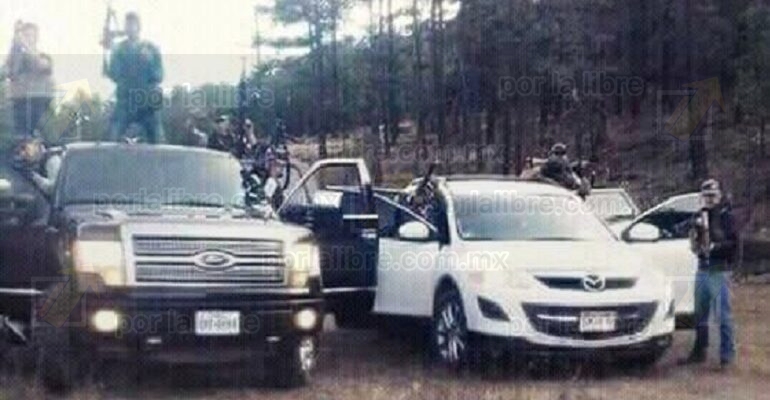 Asimismo los hombres viajan a bordo de pickups y camionetas, en y fila pasan a toda velocidad por los caminos, alcanzando a observar que todos llevan armas largas, algunos cascos y chalecos antibalas y nadie se interpone a su paso ante el miedo de ser agredidos.