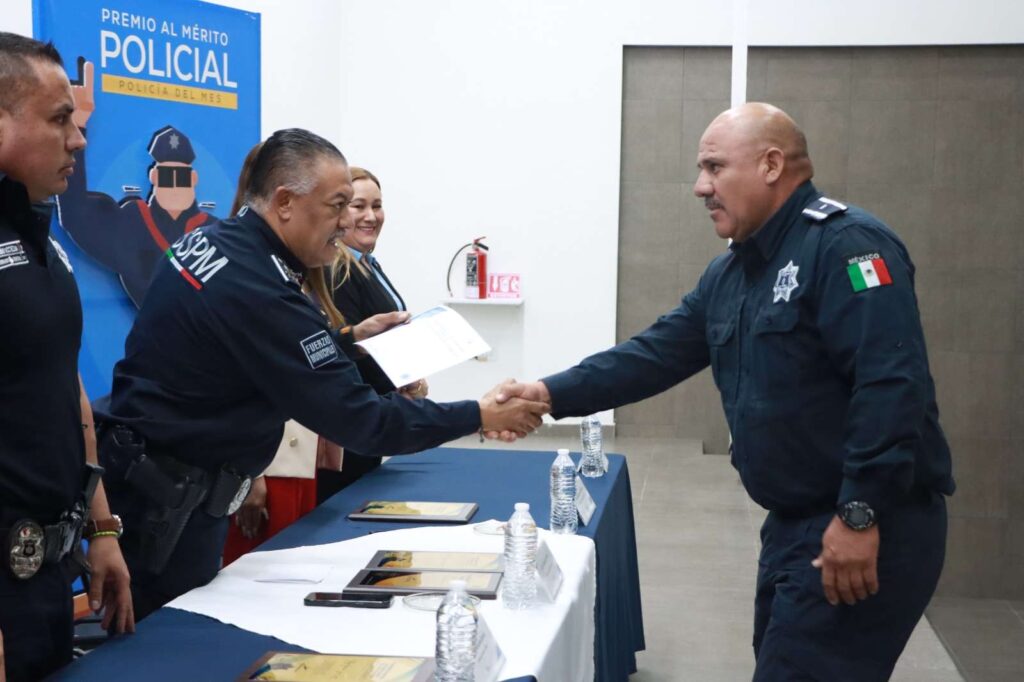 Ciudad Juárez.- La Secretaría de Seguridad Pública Municipal reconoció a 60 agentes como “Policía del Mes” de agosto, en un evento realizado en las instalaciones de la Academia Municipal de Policía, destacando sus acciones heroicas, detenciones relevantes y aportaciones en labores de prevención y vigilancia en la ciudad.