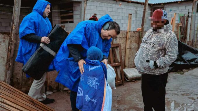 Chihuahua.- El alcalde Marco Bonilla recorrió calles de la colonia Los Mezquites al sur de la ciudad para llevar diversos apoyos durante la lluvia ocurrida por la tarde de este lunes, además de las bajas temperaturas que prevalecen en la ciudad.