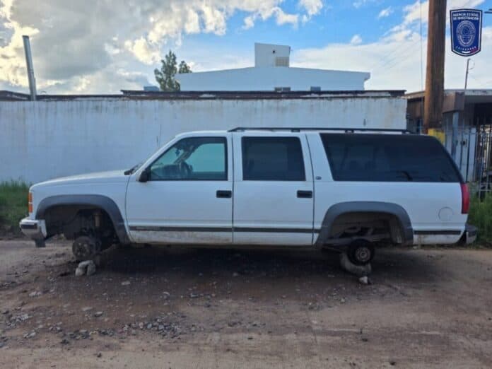 Mientras que, en las calles Libertad y 35 de la colonia Independencia en la ciudad de Cuauhtémoc, localizaron un vehículo de la marca GMC, línea Suburban, modelo 1999, color blanco, que contaba con reporte de robo interpuesto el 01 de septiembre del 2025, en el municipio de Cuauhtémoc.