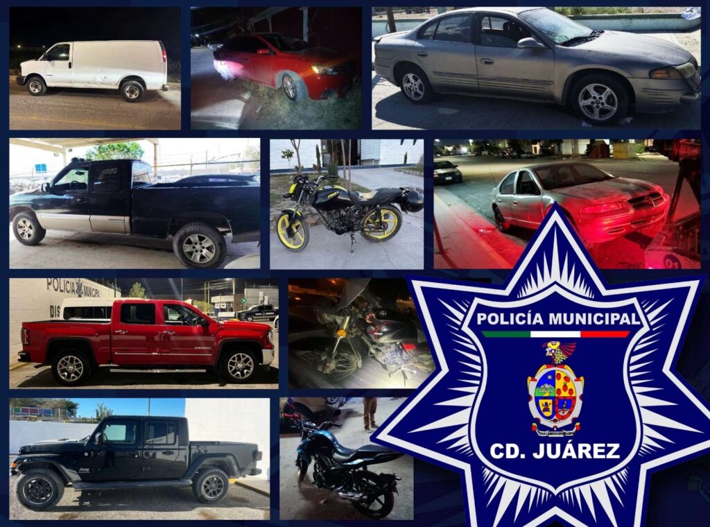 Ciudad Juárez.- Elementos de la Secretaría de Seguridad Pública Municipal, adscritos a los distintos distritos policiales, lograron la recuperación de diezvehículos que cuentan con reporte de robo de días o meses atrás.