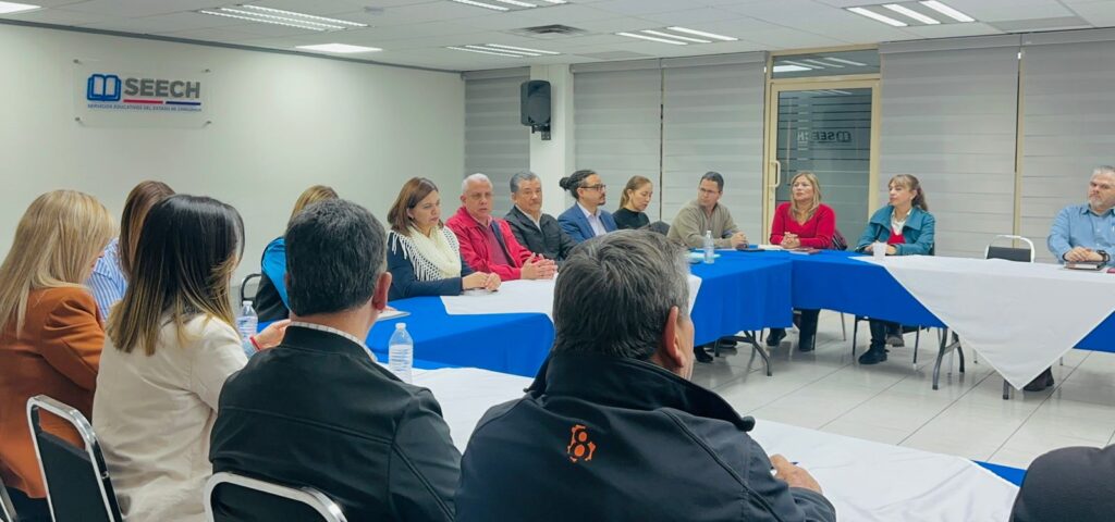Posterior a la reunión de trabajo y de gestoría que llevó a cabo la Secretaría de Educación y Deporte (SEyD) del Gobierno del Estado de Chihuahua, y la Sección 8 del Sindicato Nacional de Trabajadores de la Educación (SNTE), con el acompañamiento del Comité Ejecutivo Nacional del SNTE, y de Mario Rafael Llergo Latournerie, titular de la Unidad del Sistema para la Carrera de las Maestras y Maestros, el pasado jueves 5 de diciembre, la Directora General de los SEECH, Teresa de Jesús López Ramírez y Eduardo Antonio Zendejas Amparán, Secretario General de la Sección 8 del SNTE, encabezaron una reunión con una comisión de las maestras y maestros que fueron dados de baja en el proceso de promoción horizontal.