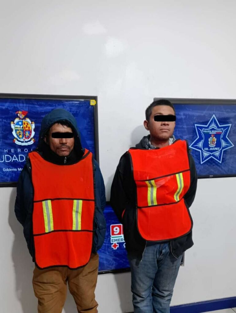 Ciudad Juárez.- Elementos de la Secretaría de Seguridad Pública Municipal, adscritos a la Estación de Policía del Distrito Centro, realizaron la detención en términos de flagrancia de dos sujetos por su presunta responsabilidad en el delito de robo.